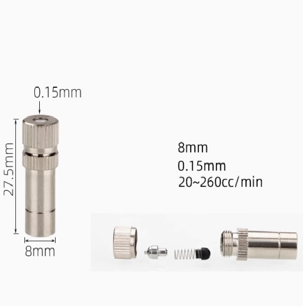 -Béc phun sương đồng số 8: lỗ phun 0,8, sương to, tưới lan rất phù hợp trên sân thượng, phun trên mái tole giảm nóng...vv