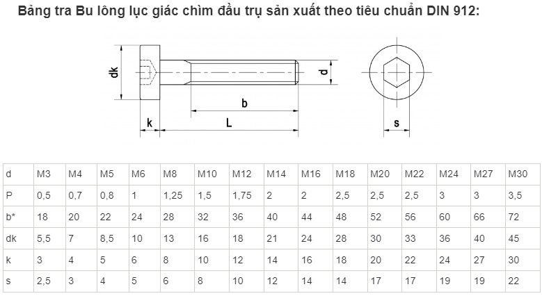 DIN 912 – Tiêu chuẩn bu lông lục giác chìm