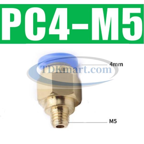 Đầu nối nhanh khí nén thẳng ống 4- Ren ngoài M5