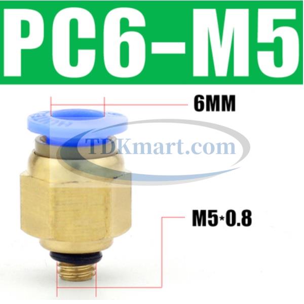 Đầu nối nhanh khí nén thẳng ống 6- Ren ngoài M5