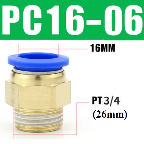 Đầu nối nhanh khí nén thẳng-Ren ngoài PC16-06