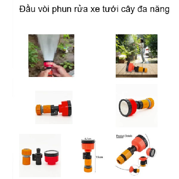Vòi xịt tưới cây đa năng nhiều chế độ xịt tưới là một dụng cụ hữu ích cho việc chăm sóc và tưới cây trong vườn hoặc khu vườn nhà hoặc rửa xe, rửa bụi.... Dưới đây là một số đặc điểm và lợi ích của vòi xịt tưới cây đa năng: