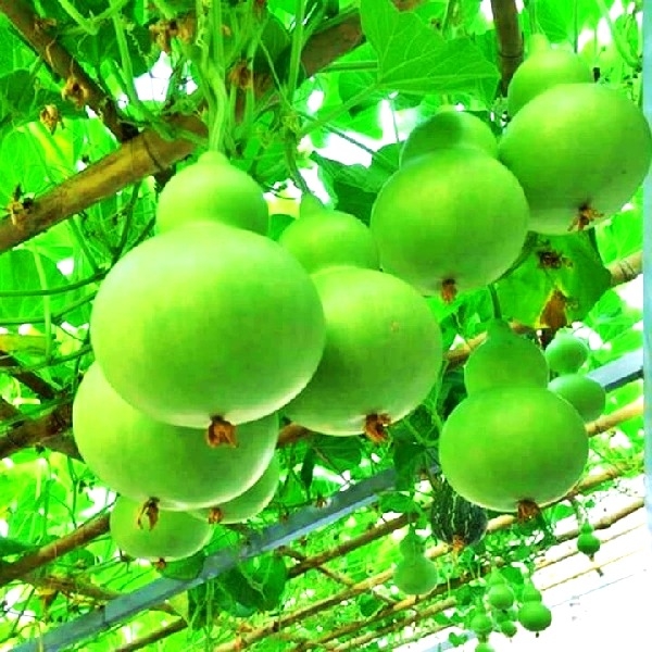 - Sinh trưởng mạnh, trồng quanh năm. Trái dạng bầu có cổ, màu xanh nhạt, cao 17-19cm, đường kính 11-12cm, làm kiểng và đồ thủ công mỹ nghệ rất đẹp. Thu hoạch: 40-42 ngày sau gieo.