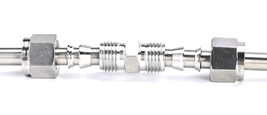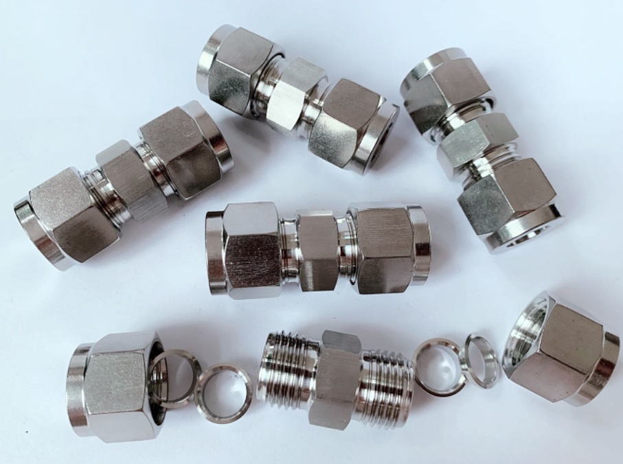 - Straightening stainless steel 2 heads to tighten corn kernels showing straight type CONNECTING INOX 304 two heads tightening corn kernels connecting used for metal pipes (INOX CONNECTOR includes 3 parts: tightening ring, corn kernels, tightening cap)