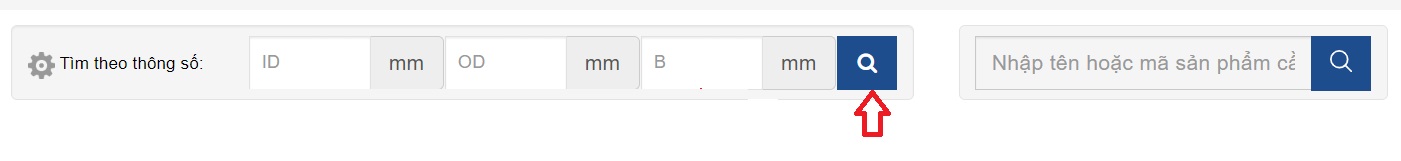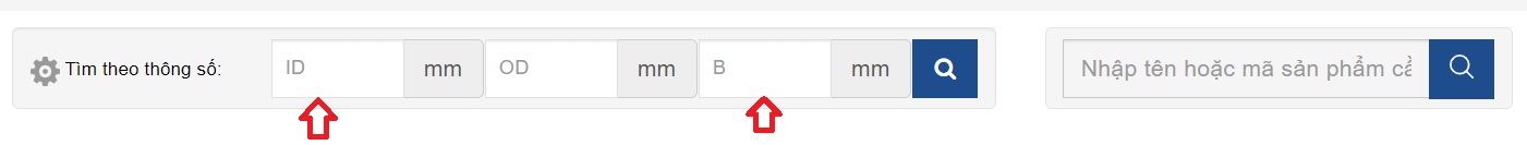- Bước 3: Sau khi click chọn loại oring cao su, trên thanh công cụ tìm kiếm, bạn nhập kích thước đường kính trong oring (ID) và đường kính sợi oring vào từng ô tương ứng.