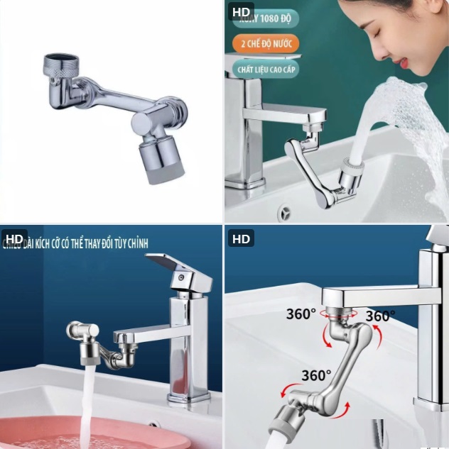 Đầu nối vòi nước thông minh xoay 1080 độ -Vòi nước lắp chậu rửa bát chén inox cao cấp với 2 chế độ nước