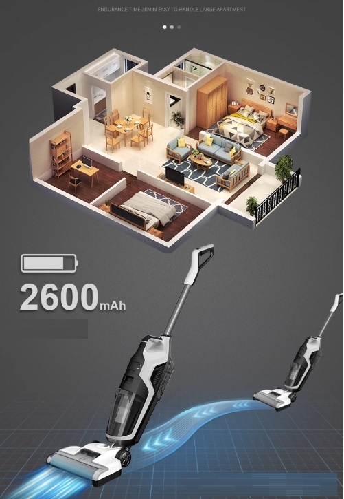 Máy hút bụi lau nhà nổi bật với khả năng hoạt động lên đến 40 phút, nâng cao tiêu chuẩn của việc làm sạch nhà cửa. Với mức hiệu suất ấn tượng này, bạn có thể dễ dàng làm sạch một ngôi nhà rộng lớn lên đến 300m2 chỉ trong một lần sạc đầy. Điều này là nhờ vào hệ thống pin dung lượng 2600mAh bền bỉ và hiệu suất cao được trang bị trên sản phẩm.