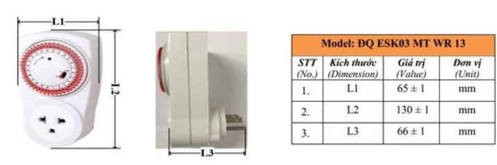 Ổ cắm hẹn giờ Điện Quang ĐQ ESK MT03 WR 13 (Điều chỉnh cơ, 1 lỗ - 3 chấu, trắng – đỏ)